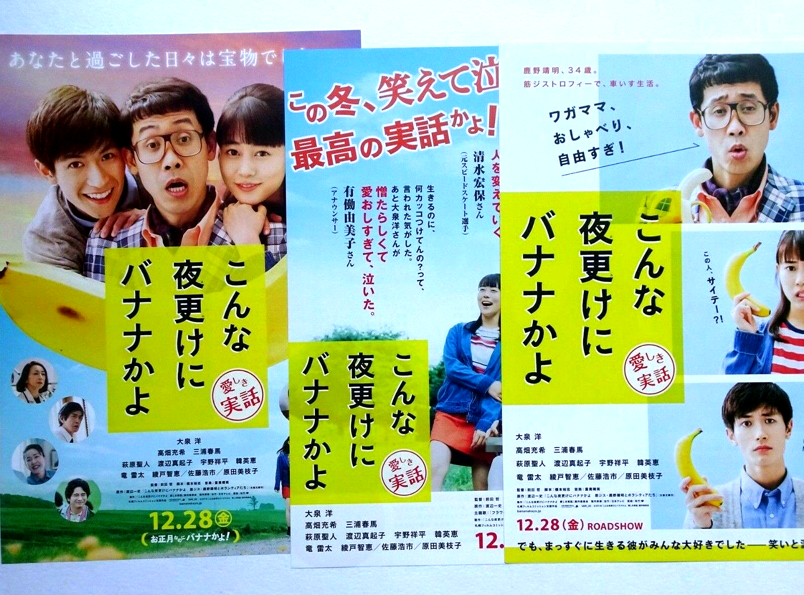 Miura Haruma Japanese Movie Flyer 2018 Chirashi lot of 3 Konna Yofukeni Banana kayo