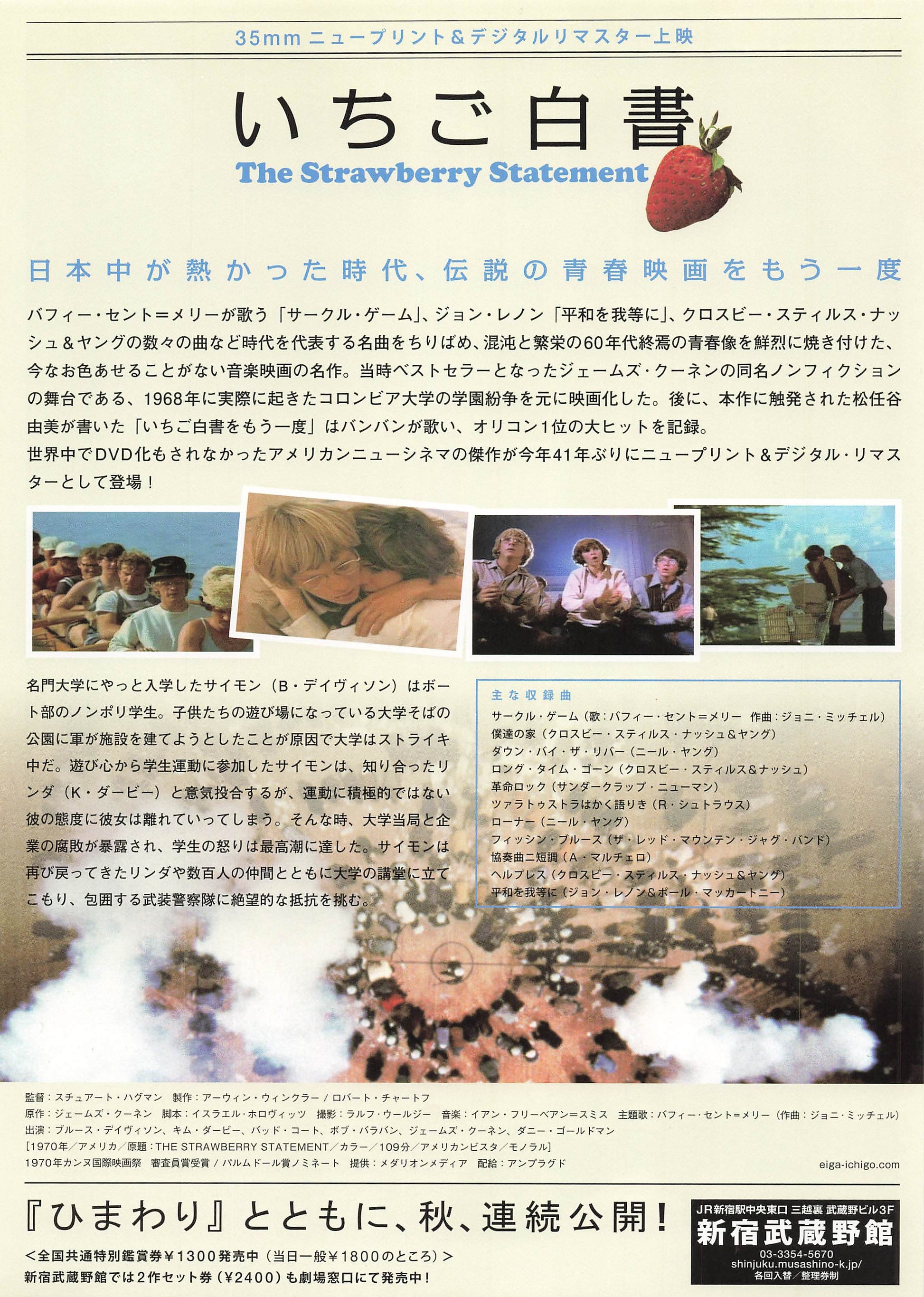 Chirashi The Strawberry Statement 1970 Digitally Remastered mini poster Japanese Movie Flyer B5 size