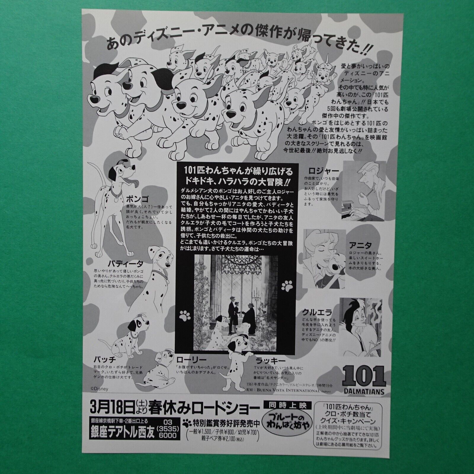 One Hundred and One 101 Dalmatians1961 Disney anime Movie flyer Chirashi B5 printed in 1989 Japanese dubbed version.