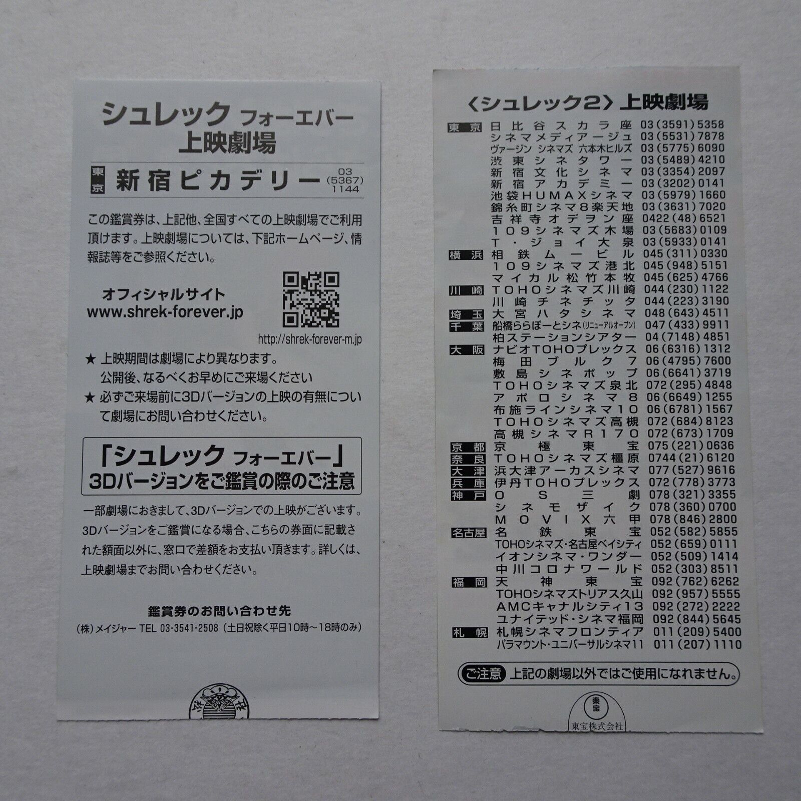 Shrek 2 2004 and Shrek forever 2010 Japanese paper stub used movie ticket anime set of 2