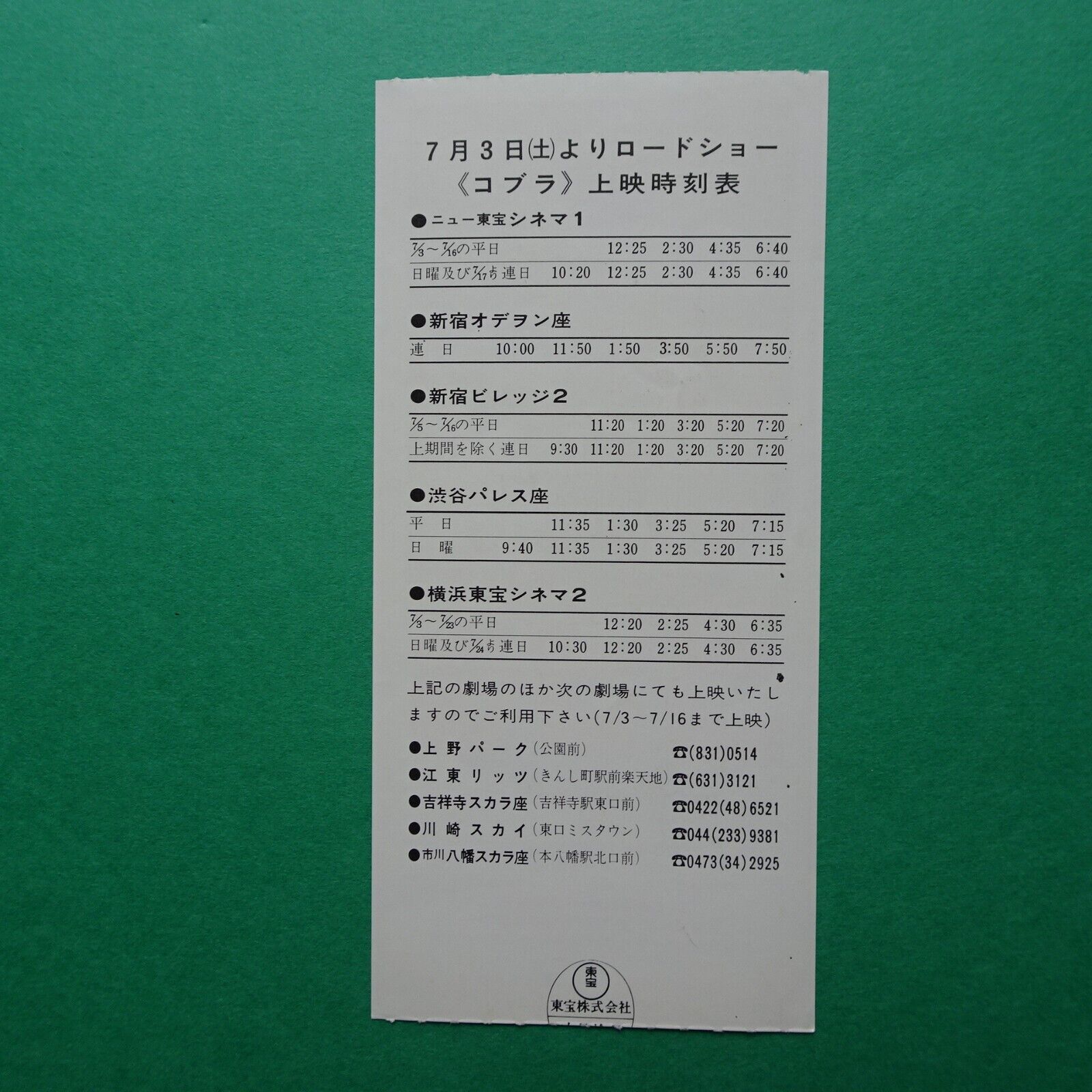 Space Adventure Cobra 1982 Japanese movie stub used ticket anime Dezaki Osamu