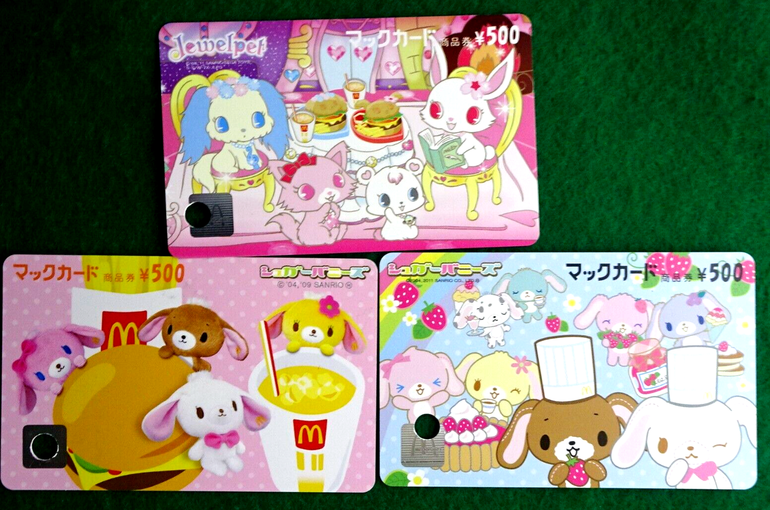 Sugar Bunny x 2 + Jewel pet MacDonald gift cards Used balance 0 from Japan lot 3