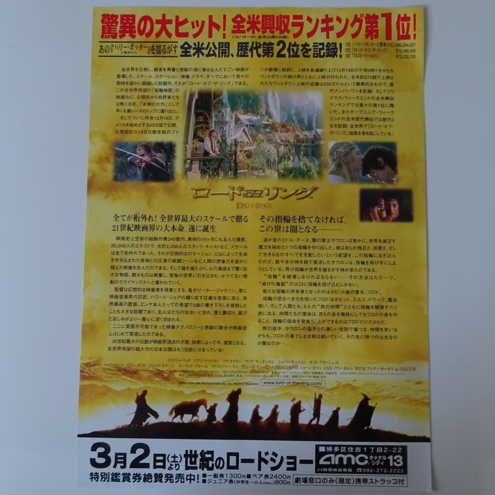 The Lord of the Rings 2001 Flyers B5 size chirashi Japanese Elijah Wood Orlando