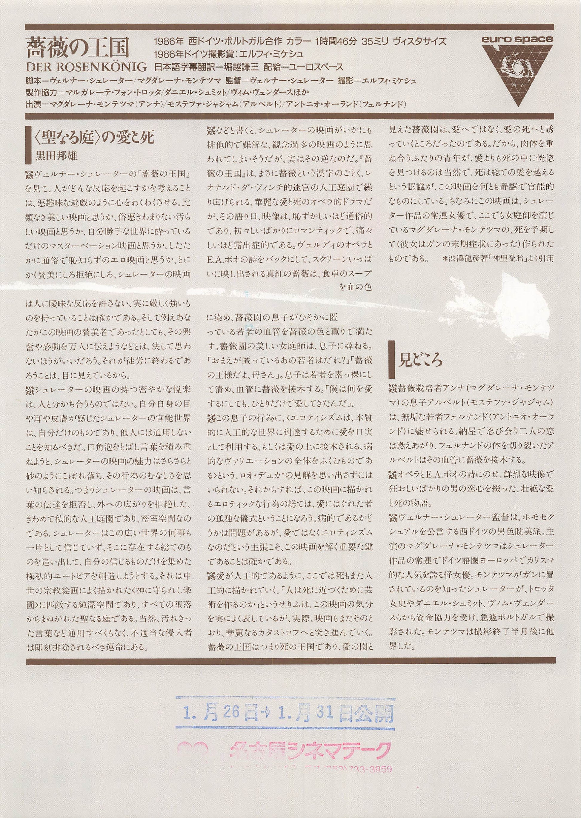 The Rose King Der Rosenkönig 1986 Movie Japanese Flyer Chirashi B5 mini poster Werner Schroeter