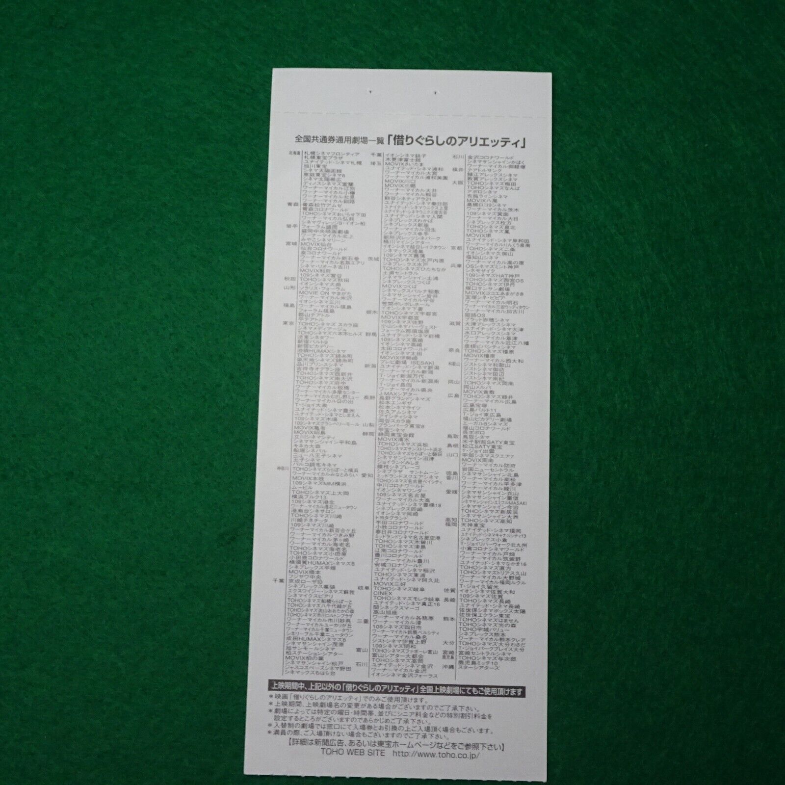 The Secret World of Arrietty 2010 stub used movie ticket Japanese anime