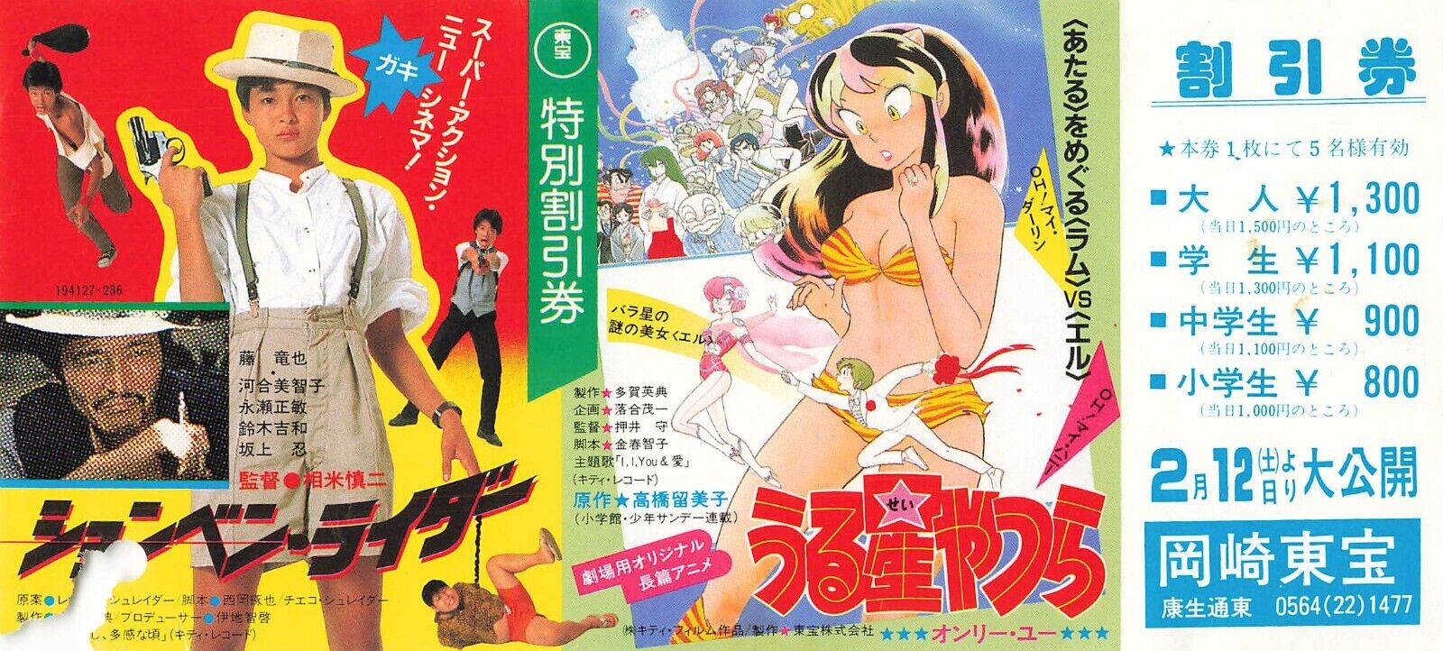 Urusei Yatsura Only You P. P. Rider 1983 Japanese movie coupon double feature